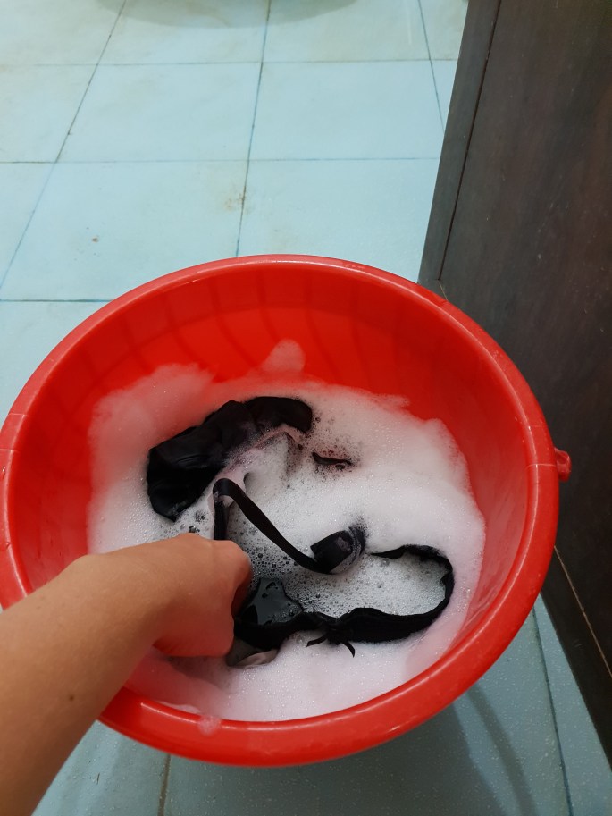 En dag när vi varit på shoppingtur hade den mycket trevliga kvinna som lagar mat och städar åt oss, storstädat våra rum. Då menar jag STORstädat. Hon hade gått igenom allt och vikt och lagt ihop och torkat och fixat. Hon hade ju ingen aning om hur jag tänk om vilka högar mina kläder låg i. Jag hade en mycket klurig och invecklad organisering av mina högar med kläder eftersom tvättmöjligheterna är begränsade. En hög med jättesmutsiga, en hög med lite smutsiga som gott kan användas några gånger till, en hög med nästan rena som jag sparar lite på och en hög (väldigt liten numera) med helt rena som jag tänkt använda de sista dagarna och vid hemfärden. Nu var allt prydligt ihopvikt i EN enda hög. Hon hade dessutom lagt ihop alla böcker, anteckningar och annat skrivmaterial som jag lagt ut för att ha koll på vilket som ska vara till vad, i en påse. Flaskor och påsar som jag sparat för att använda till soppåsar och vattenflaskor var slängda. Hon måste ha tyckt att jag var en riktig slarvmaja som hade sådan oordning på mina grejer. Hon är så hjälpsam och vill så väl men det blir så fel. Nåja, nu är det inte så många dagar kvar så hon behöver inte städa mitt rum innan vi åker.