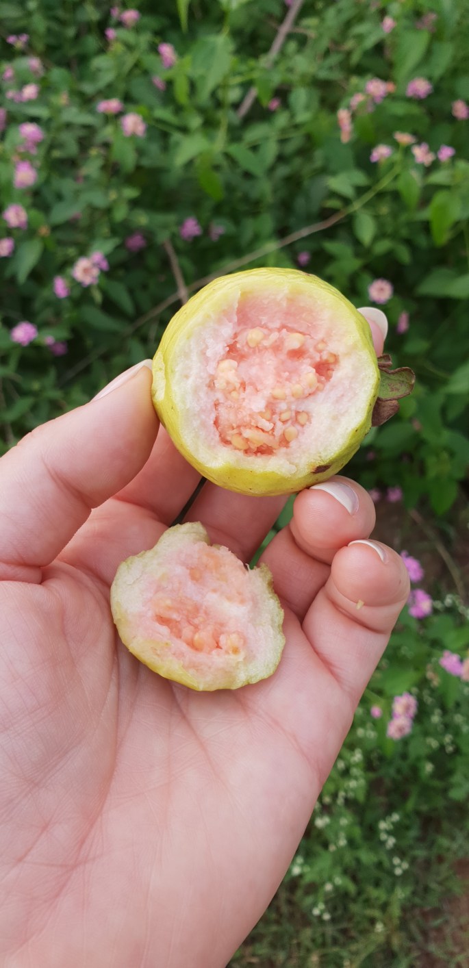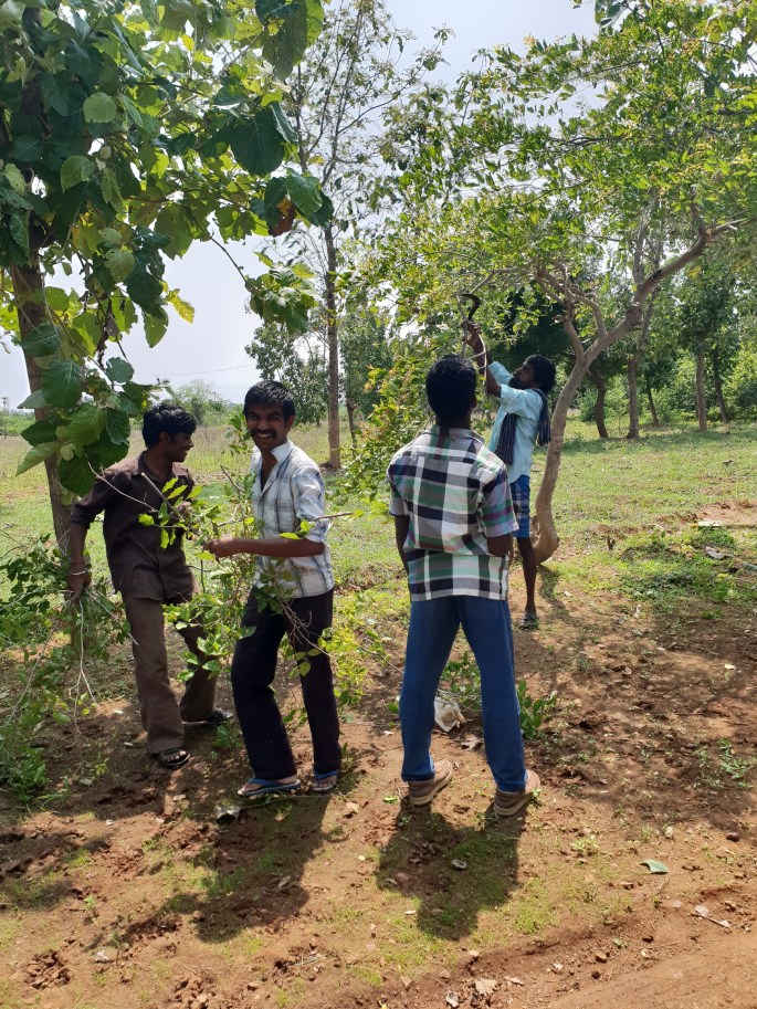 Där var några bekantingar från Trichy, några av ungdomarna som bor på samma ställe som vi var där. De åker dit en gång i veckan för att hjälpa till. En rundvandring för att titta på ägorna och äta nyplockad Guava.