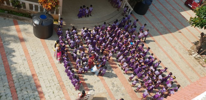 Dag två började med frukost med fantastisk utsikt och sedan rundtur på skolan. Varje skoldag börjar med samling på skolgården. Barnen står i raka rader nästan i givakt och svarar i kör när rektorn frågar något. Det sjungs bön och nationalsång innan skoldagen börjar.
