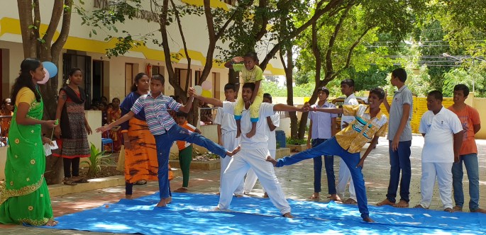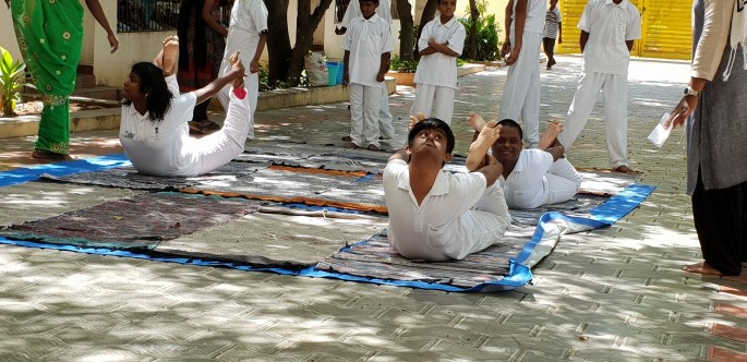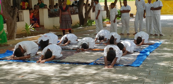 De hade även yogauppvisning. Här på skolan har de yoga varje dag. Det är väldigt bra!