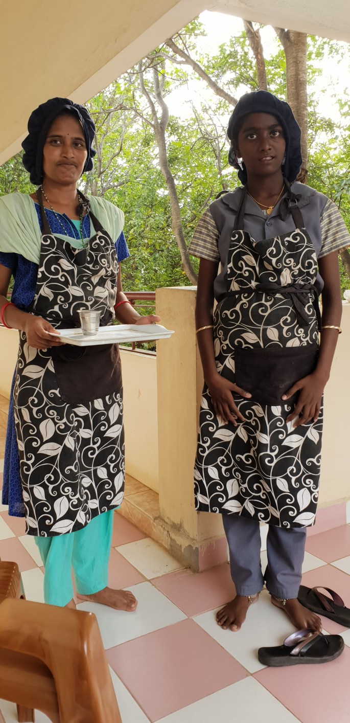 Efter fem timmar var vi framme. Här ligger numera ett boende för “mentally retarded children”, en skola och en kyrka. Stället drivs av Church of South India. Vi var väntade, det stod en pojke vid grinden. Han visade oss in i en av byggnaderna där väntade föreståndarinnan på oss. Jag presenterade oss och förklarade syftet med vårt besök. Hon berättade att hon “bara” arbetat här sedan 1991 så hon visste inget om de barn som blivit adopterade innan det. Med tanke på att Andreas och Linda kom till Sverige 1980 kunde hon inte hjälpa oss. Men hon ville ringa till en gammal man som jobbat på barnhemmet från 60-talet och fram till 2000-talet, han borde veta något. Efter en kort stund kom han!